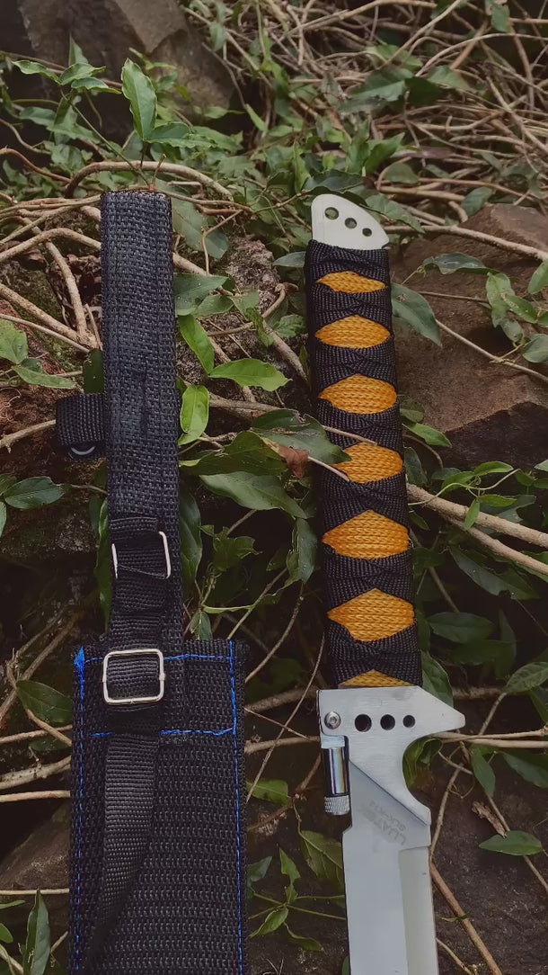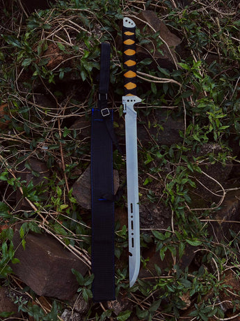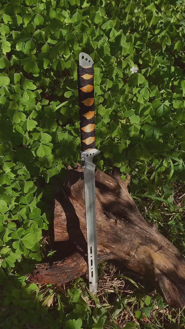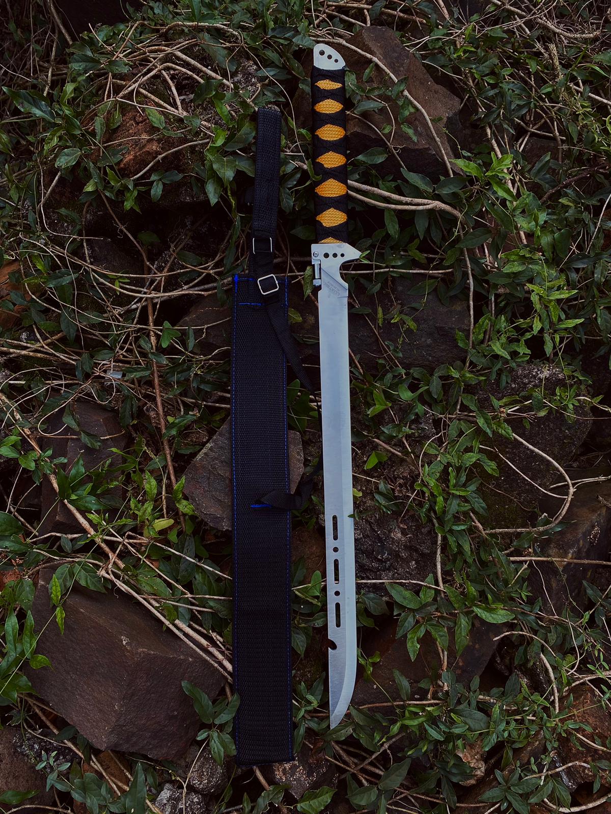 Este facão estilo Katana de 70cm, com uma lâmina de 56cm em aço inoxidável, é a escolha ideal para quem busca beleza e funcionalidade.
